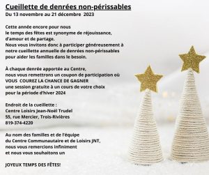 Tous les profits seront versés au programme de parrainage du Centre Loisir JNT, qui soutient activement les familles de notre communauté.